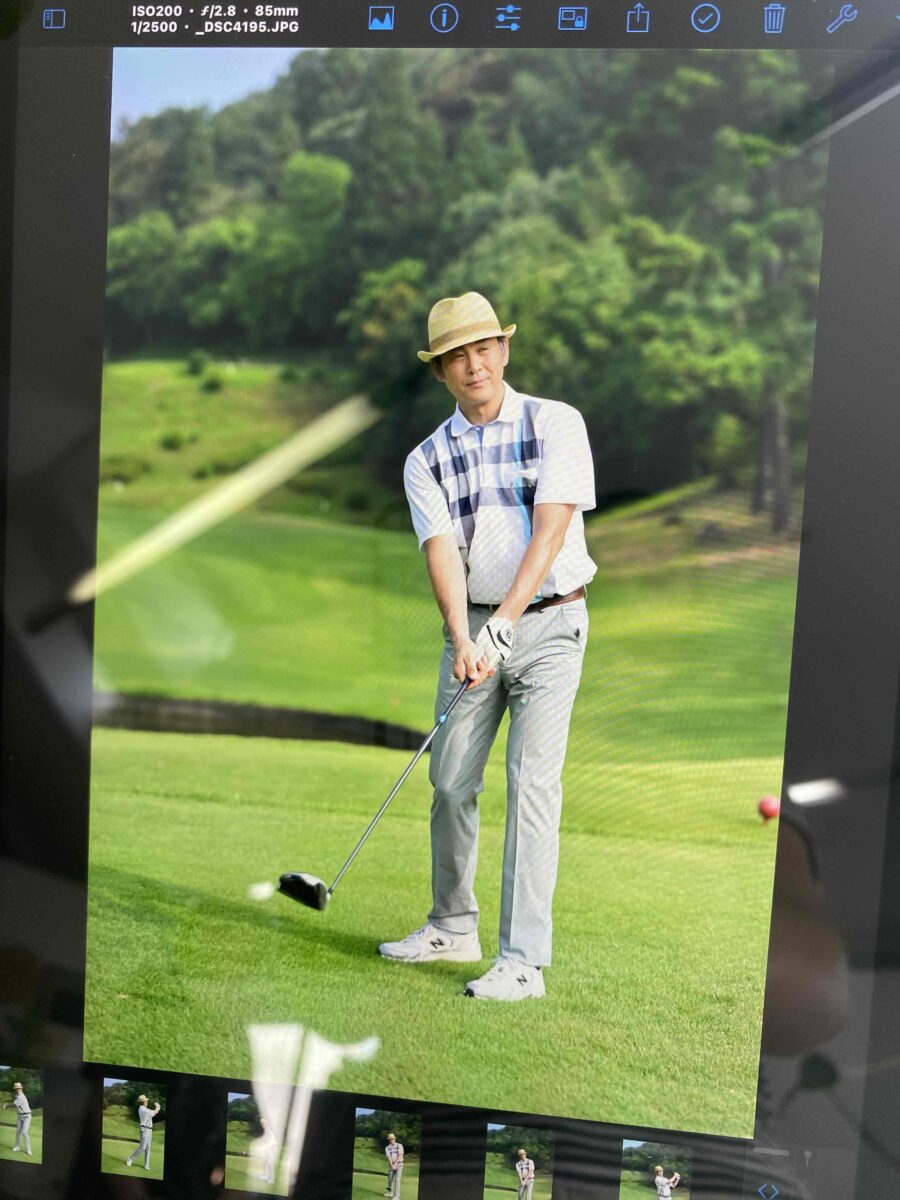 ゴルフ場で早朝から実際にラウンドしながらの撮影は汗だくでしたが、気持ちの良い天気に恵まれ、澄んだ空と青々としたグリーンに鮮やかなウェアのカラーが映え、素敵な写真が撮れました。